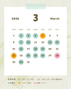 日時:3/22(月)10:00~15:00